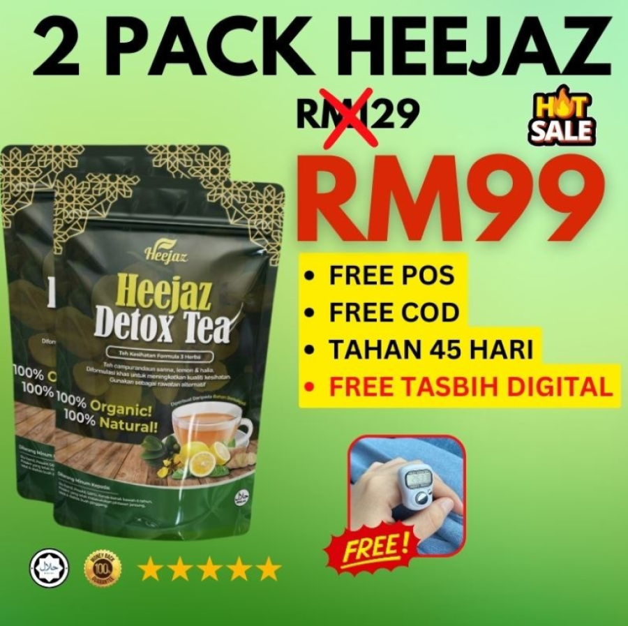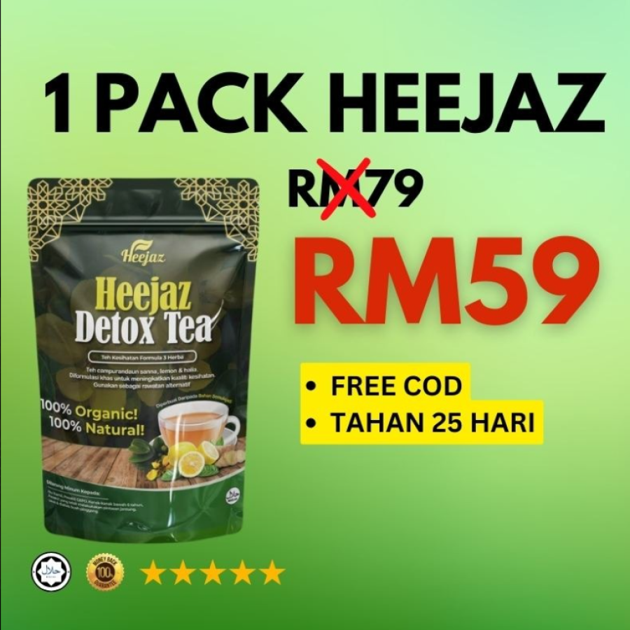 Heejaz Detox Tea adalah sejenis teh yang mengandungi tiga herba, iaitu lemon, daun senna, dan halia.